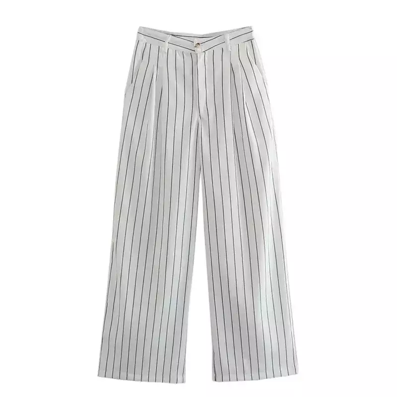 Blazer Alongado com Fechamento único Botão e Calça Cintura Alta com Bolsos