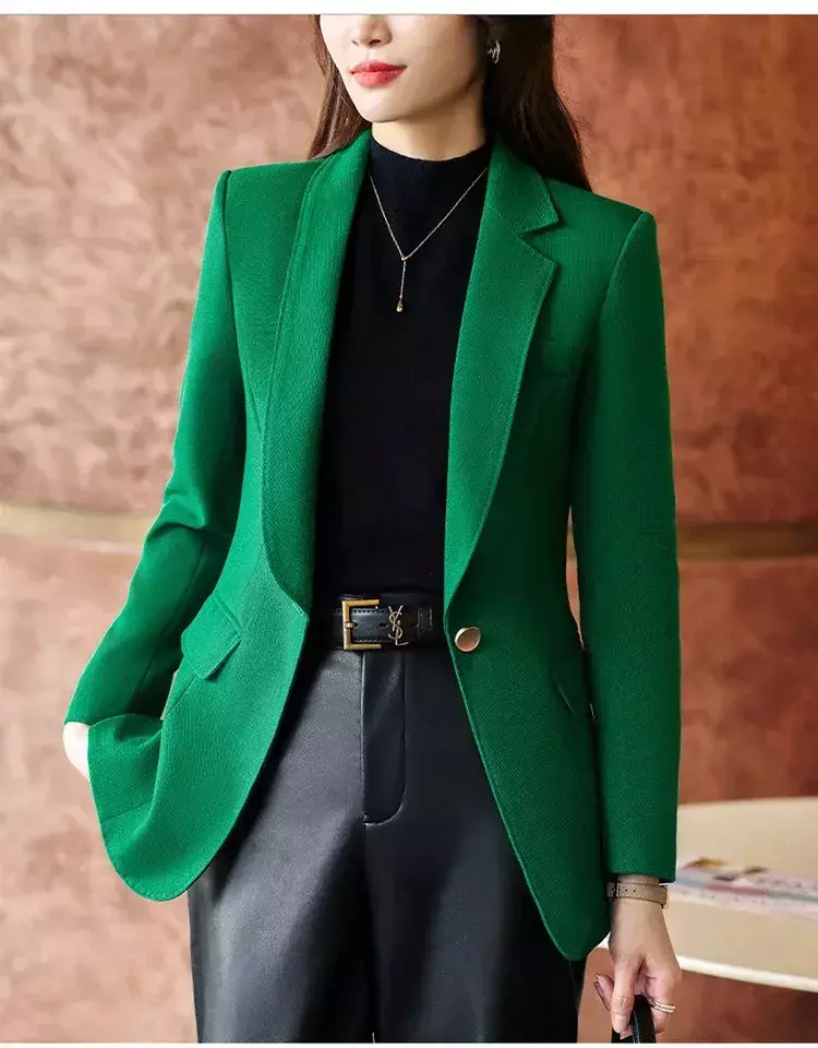 Blazer Alongado com Fechamento único Botão e Calça Cintura Alta com Bolsos