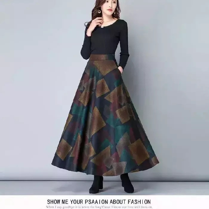 Saia Longa em Lã com Estampa